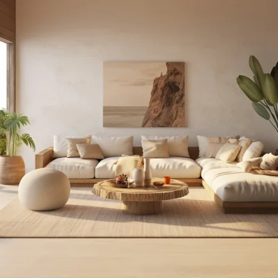 ให้บรรยากาศของห้องดูสะอาด ใช้วัสดุธรรมชาติ เช่น ไม้สัก ไม้ปิดผิวที่ไม่มีลายเส้น โฟลว์ หิน หรือเรซีน ในการตกแต่งภายใน
